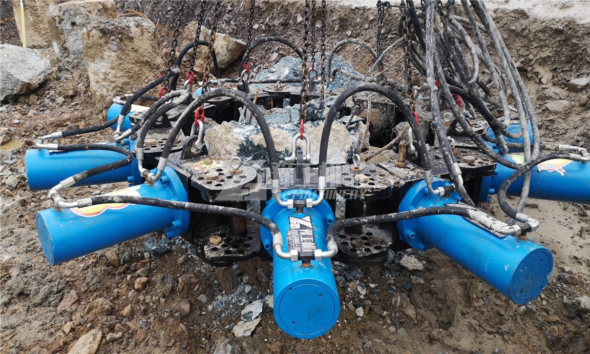 中鐵建工集團下屬浙江臺州火車站房建工程項目工地直徑850-1100mm的圓柱形灌注樁,高約2-3米,施工方為了提高施工效率,摒棄老舊的人工破除法,改用豫工破樁機進行機械破除。 本次施工采用挖掘機吊取破樁機,并以它為移動載具,同時作為動力源提供破樁動力。由施工人員指揮輔助將破樁機套入樁身,在截第一段時,在距離樁上端面400mm左右處截,以后往下每隔距離不大于300mm左右截一次。在截后一段時先清除掉落在樁體周圍的碎混凝土,再對準標高線截后一次。 截完后,由一名施工人員將碎混凝土清除,使用工具將標高線灌注樁表面處理平整。 試機過程中,豫工破樁機被客戶譽為工地破樁提速神器,直徑850-1100mm,高約2-3米的圓柱形灌注樁,每5分鐘破除!