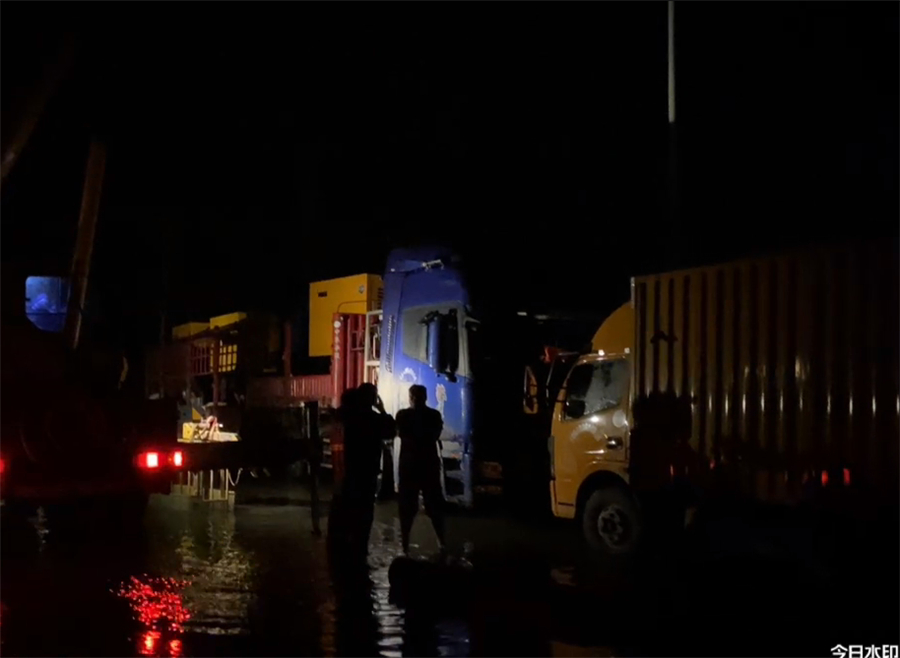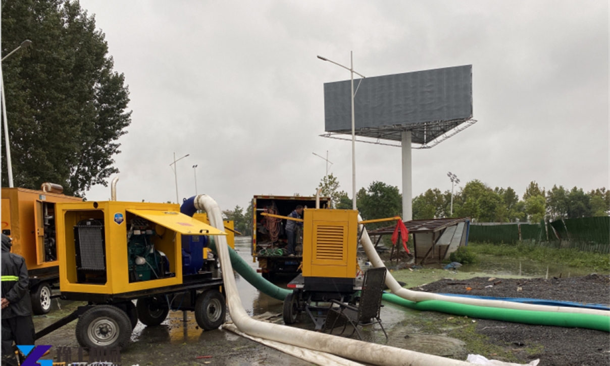 安裝調(diào)試一直持續(xù)到晚上,遭遇暴雨來襲,豫工技術(shù)員堅守一線,與抗洪人員一道,全力以赴,通宵奮戰(zhàn),保證5臺防汛泵車全部投入工作,第一時間開始執(zhí)行防汛吸水任務(wù)!